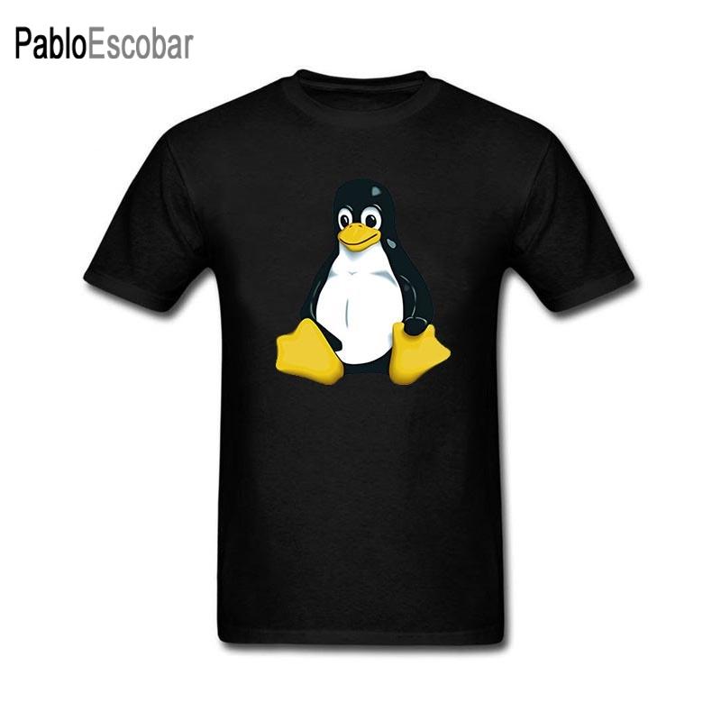 LINUX Funny T Shirt for men men cotton tshirt Natural Cotton Black footed penguin summer brand top tees 4XL 5XL