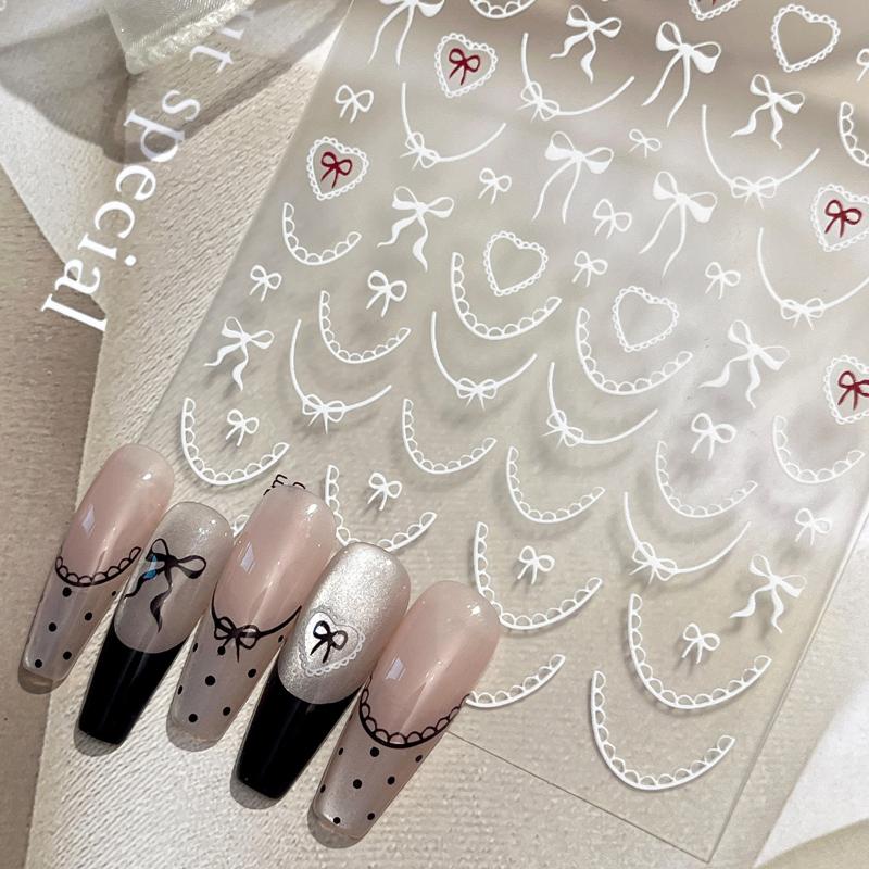 Embossed Knitting Bow Nail Stickers Love Heart 3D Relief Self Adhesive Nail Art Decorations Decals Accessory
