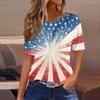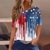 Damski modny, swobodny, krótki rękaw, nadruk, okrągły dekolt, bluzka typu pullover