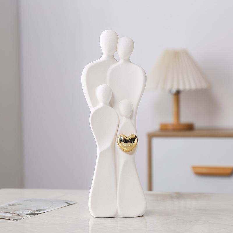 European Ceramic Sculpture for A Family of Four Creative White Couple Figurine Decorative Piece for Living Room or Office Gift