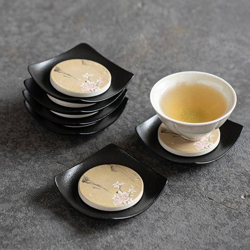 Nowe Podstawki Pod Herbatę w Stylu Chińskim z Wchłanianiem Wody, Kreatywne Wzorzyste Podkładki, Antyczne, Chroniące Przed Oparzeniami, Akcesoria do Domowej Ceremonii Herbaty Kung Fu