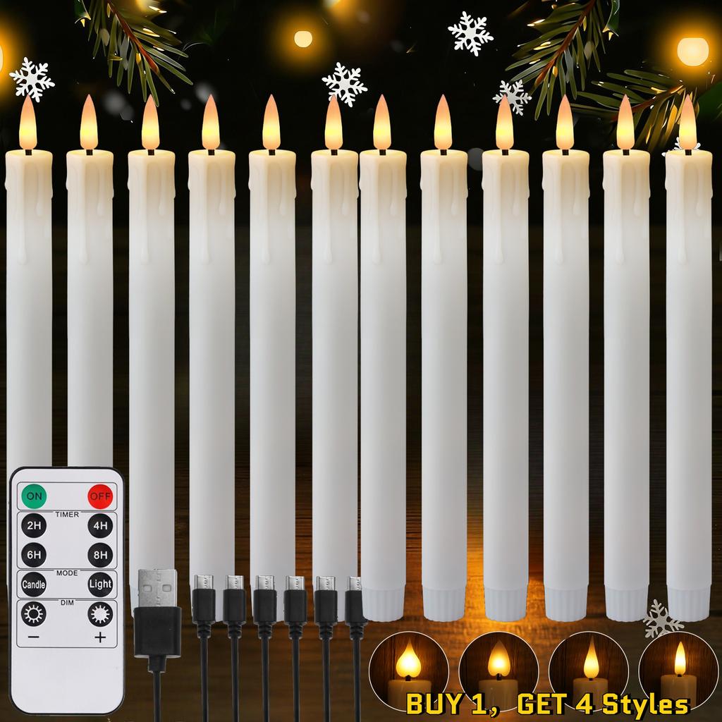 Rechargeable Flameless Taper Candles with Timer Remote Flickering 3D Wick Taper Candlesticks for Valentine Day Wedding Birthday