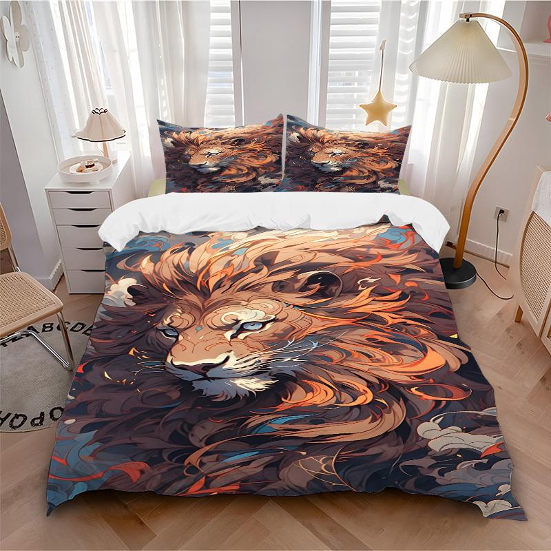 3pcs Lion Print Duvet Cover Set, Cover For Bedroom Guest Room (1 Duvet Cover + 2 Pillowcase, Without Quilt), yy250922233