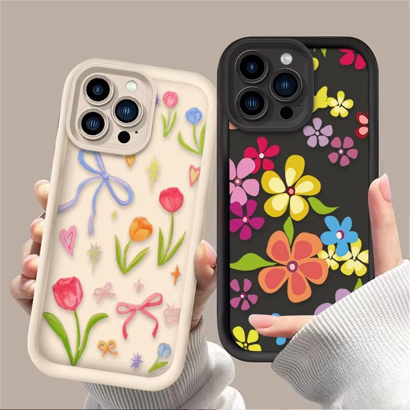 Color Flower Bow Pattern Phone Case For iPhone 16e 16 Pro Max 15 14 Plus 13 12 Mini 11 Pro Shockproof Silicone Soft Back Cover