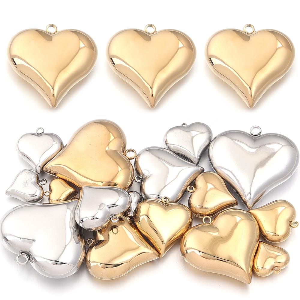 1Pc 15-45mm Stainless Steel Heart Charms for DIY Earrings Necklace Bracelet Pendant Jewelry Making Findings Accessories