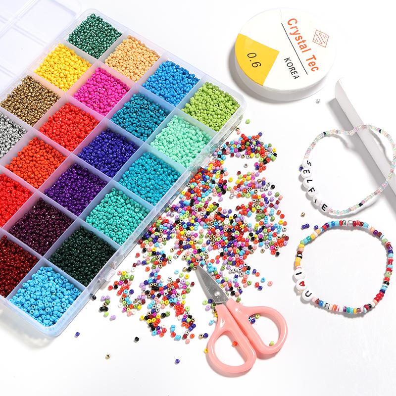 2mm Multicolor Seed Beads Jewelry Making Kit Beads for Bracelets Bead Craft Kit Set, Glass Seed Letter DIY Art and Craft