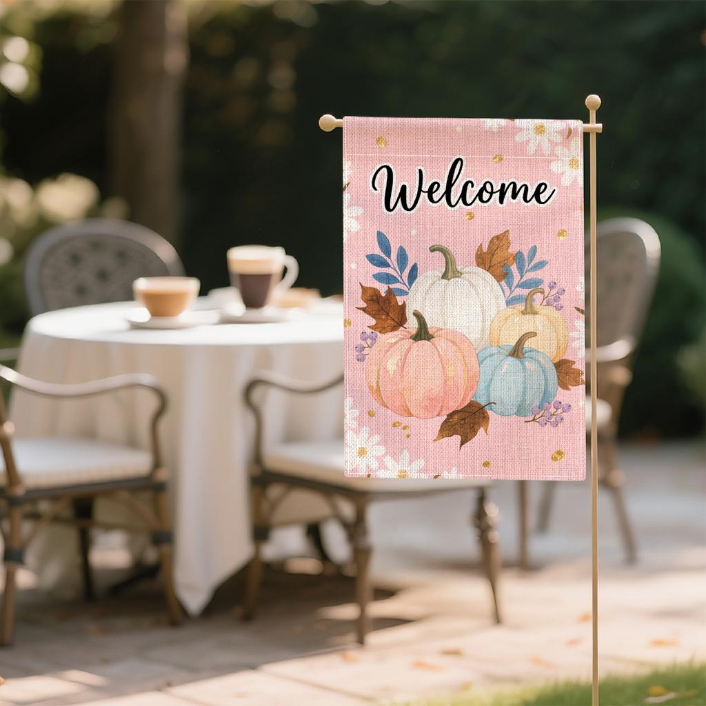 Autumn Harvest Welcome Garden Outdoor Decoration Flag, Thanksgiving Day Double-sided Yard Decoration (excluding Flagpole)