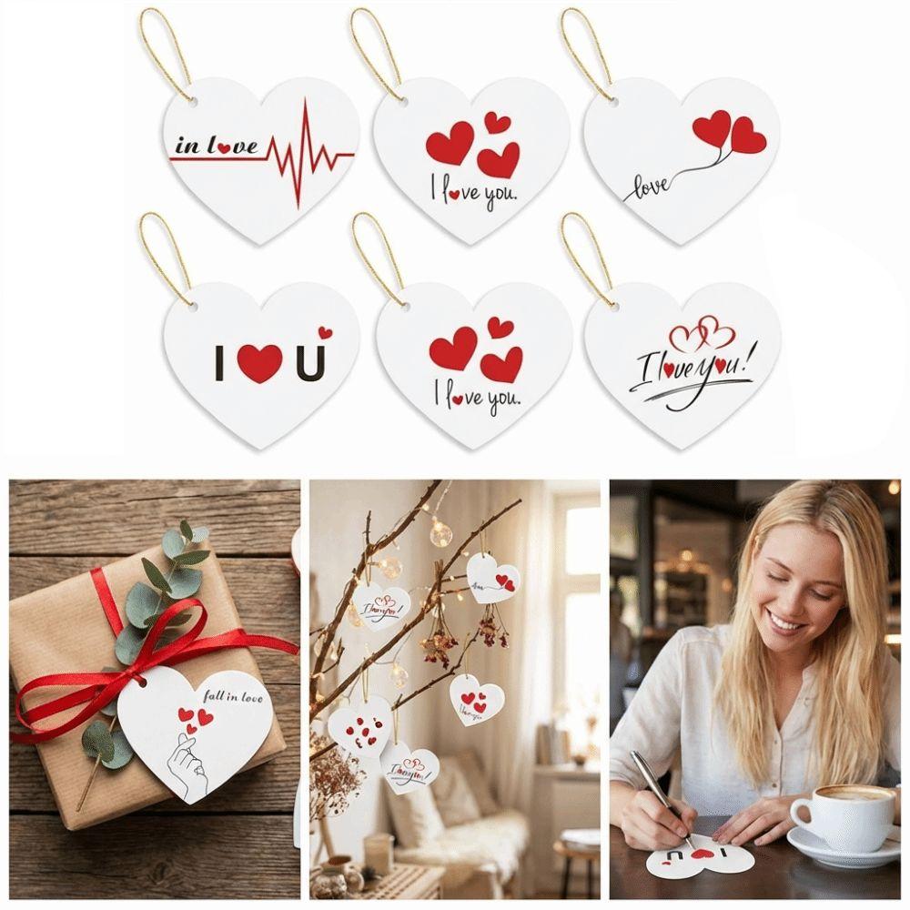 60Pcs White Heart Valentines Day Gifts Tags Gold Lanyard Handwritten Style Heart Paper Tag Small Cards Valentine's Day Labels
