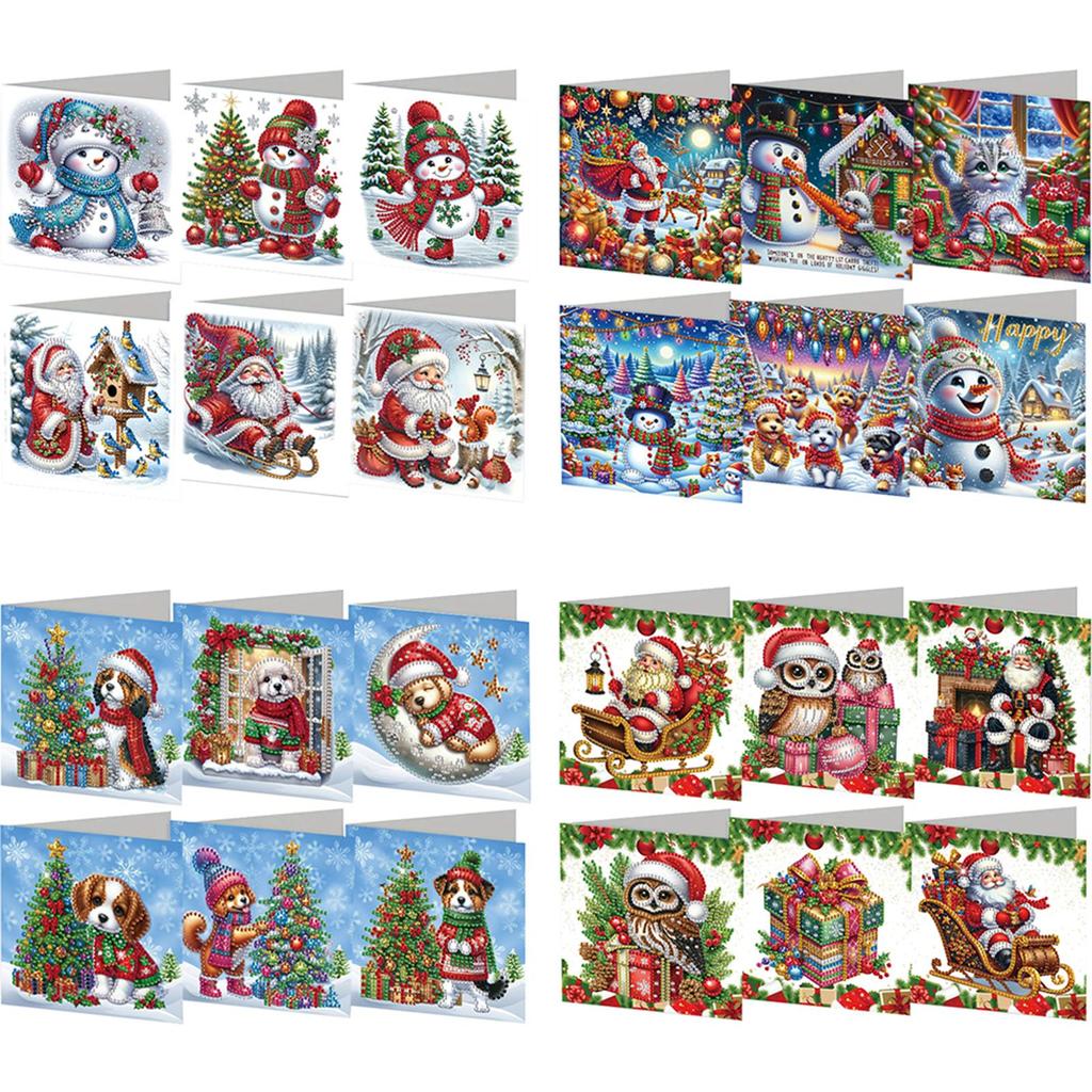 6Pcs Christmas Merry Christmas DIY Diamond Painting Card Dog & Xmas Tree Diamond Drawing Card Gifts for Family Friends and Lover