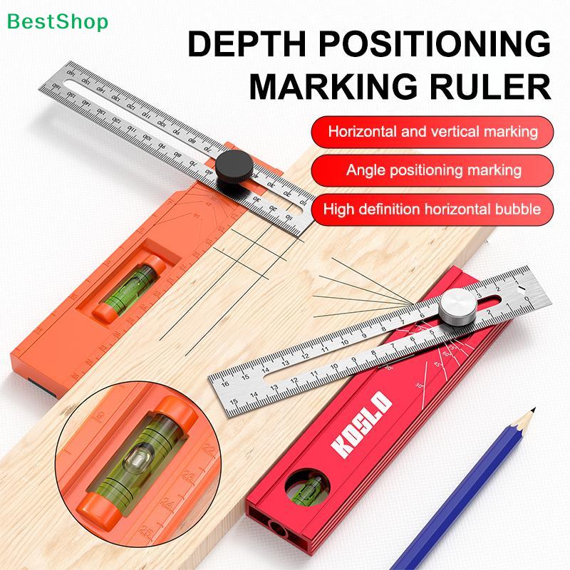 Multifunctional Positioning Marking Ruler with Level, Adjustable Angle & Scale, Precision Woodworking Measuring Tool