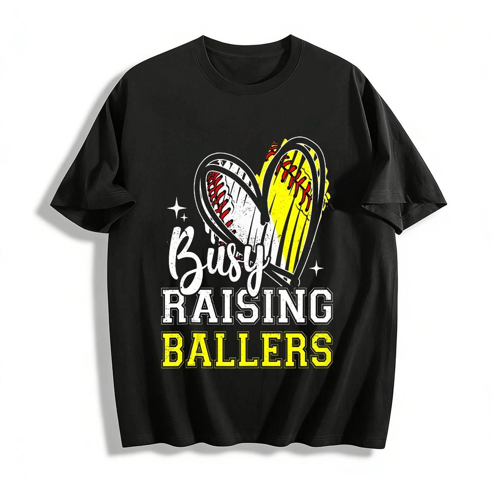 Busy Raising Ballers Baseball Softball Mom Heart Graphic Tee Pure cotton T-shirt