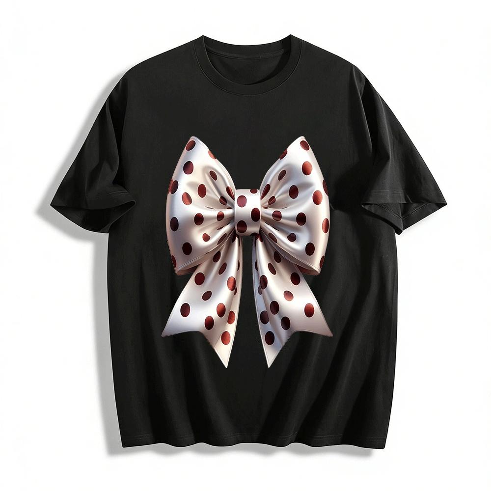 Polka Dot Bow Print Casual Loose Fit Daily Top Pure cotton T-shirt