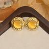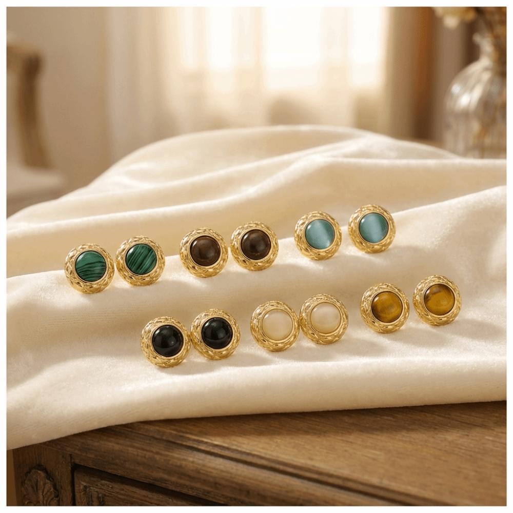 Stainless Steel Flower Earrings Oblate Shape Round Earrings Fashion Opal Earrings Party