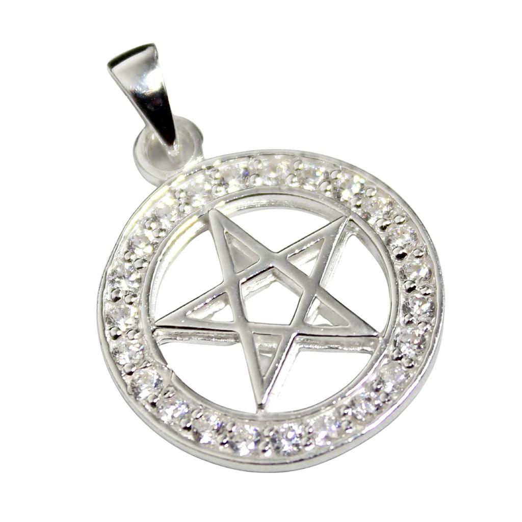 Pentagram Star Pendant with Zirconia, Sterling Silver 925