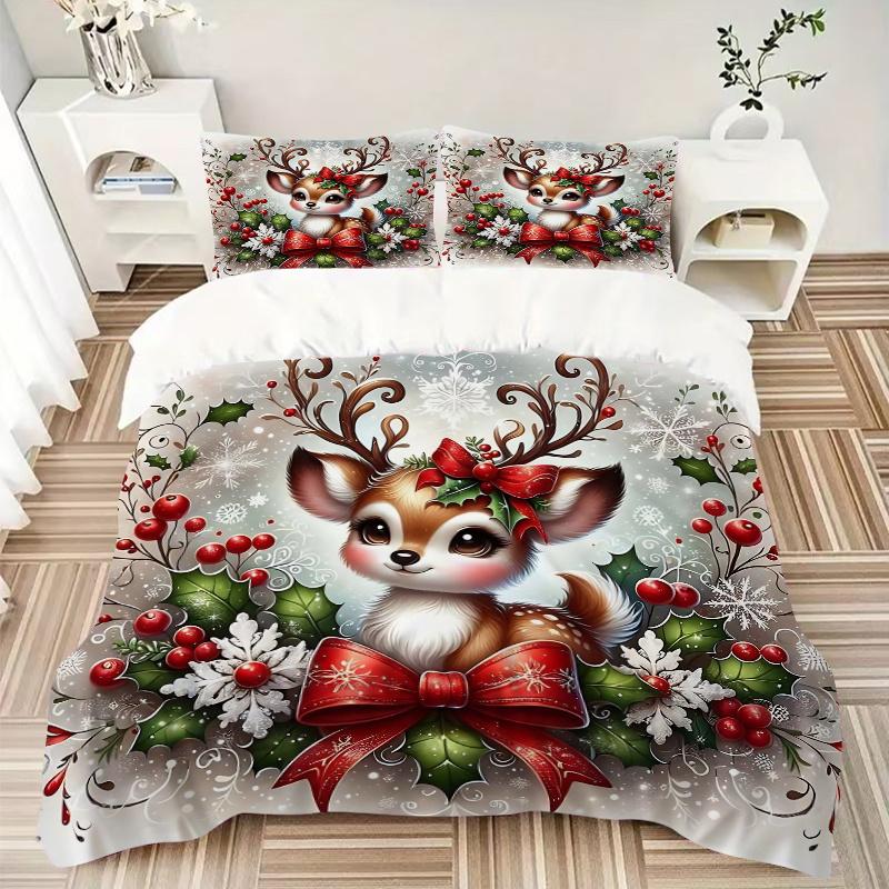 3pcs Christmas Deer Print Bedding Set (1 Cover + 2 Pillowcases, Without Inserts), This Printed Bedding Set is Soft and Comfortable, Suitable for