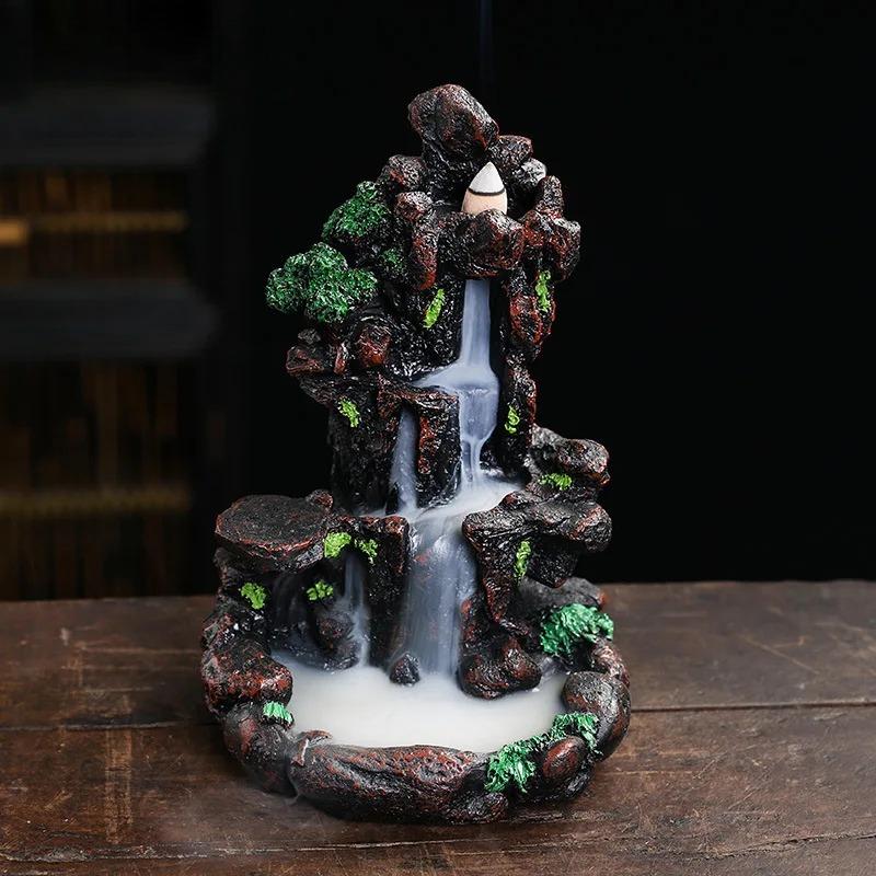 Resin Crafts Backflow Aromatherapy Furnace Creative Resin Alpine Flowing Water Backflow Incense Burner Home Relief Decoration