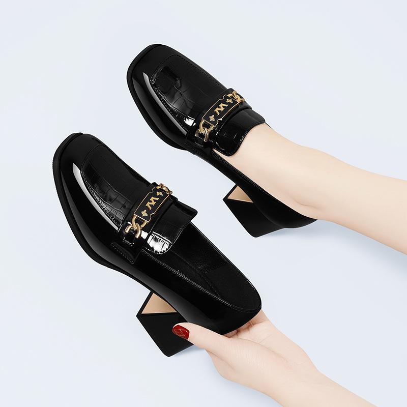 Black loafers women's shoes thick heel spring new women's British style single shoes high
