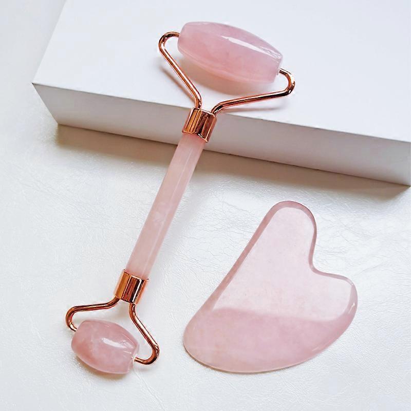Jade Roller and Gua Sha, facial roller, facial beauty roller skin care tool, rose quartz massager for face, eye, neck, body muscle relaxation, relief