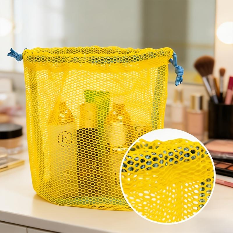 Drawstring Mesh Cosmetic Bag Toiletry Mesh Pouch Dopamine Color Grid Beach Bag, Handheld Toiletry Bag, Miscellaneous Storage Bag