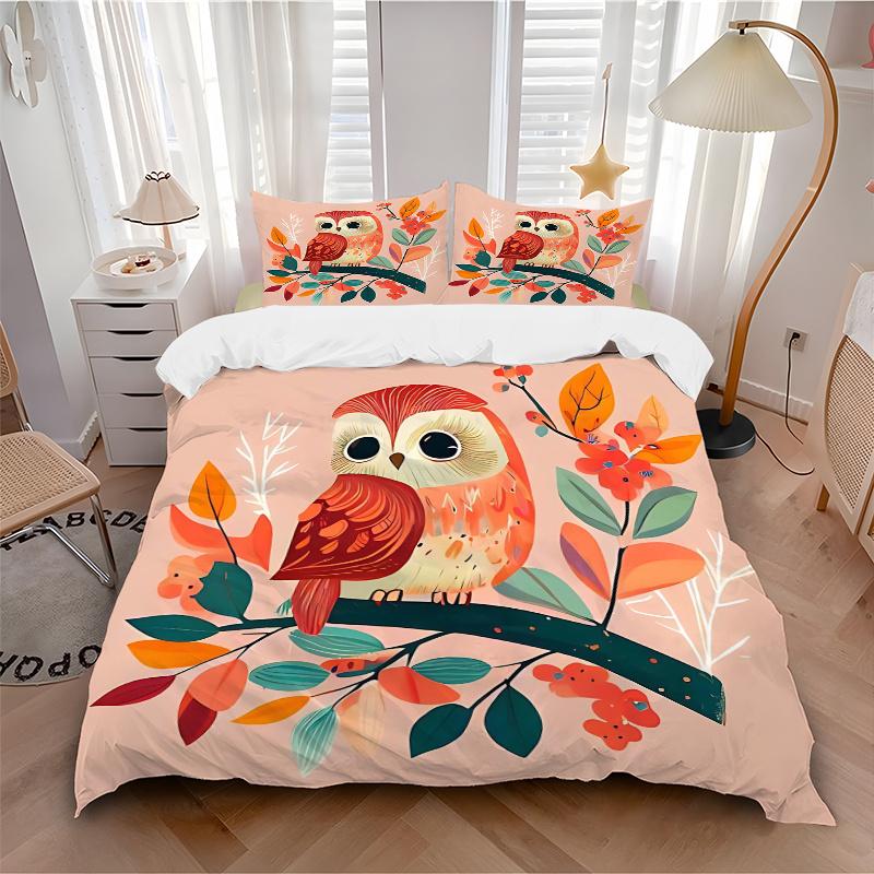 3pcs Cuddly Owl Design Bedding Set, Including Soft and Comfortable Home Bedroom Fabric L022